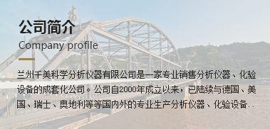 蘭州千美科學(xué)分析儀器有限公司是一家專業(yè)銷售分析儀器、化驗(yàn)設(shè)備的成套化公司。公司自2000年成立以來(lái),已陸續(xù)與德國(guó)、美國(guó)、瑞士、奧地利等等國(guó)內(nèi)外的...
